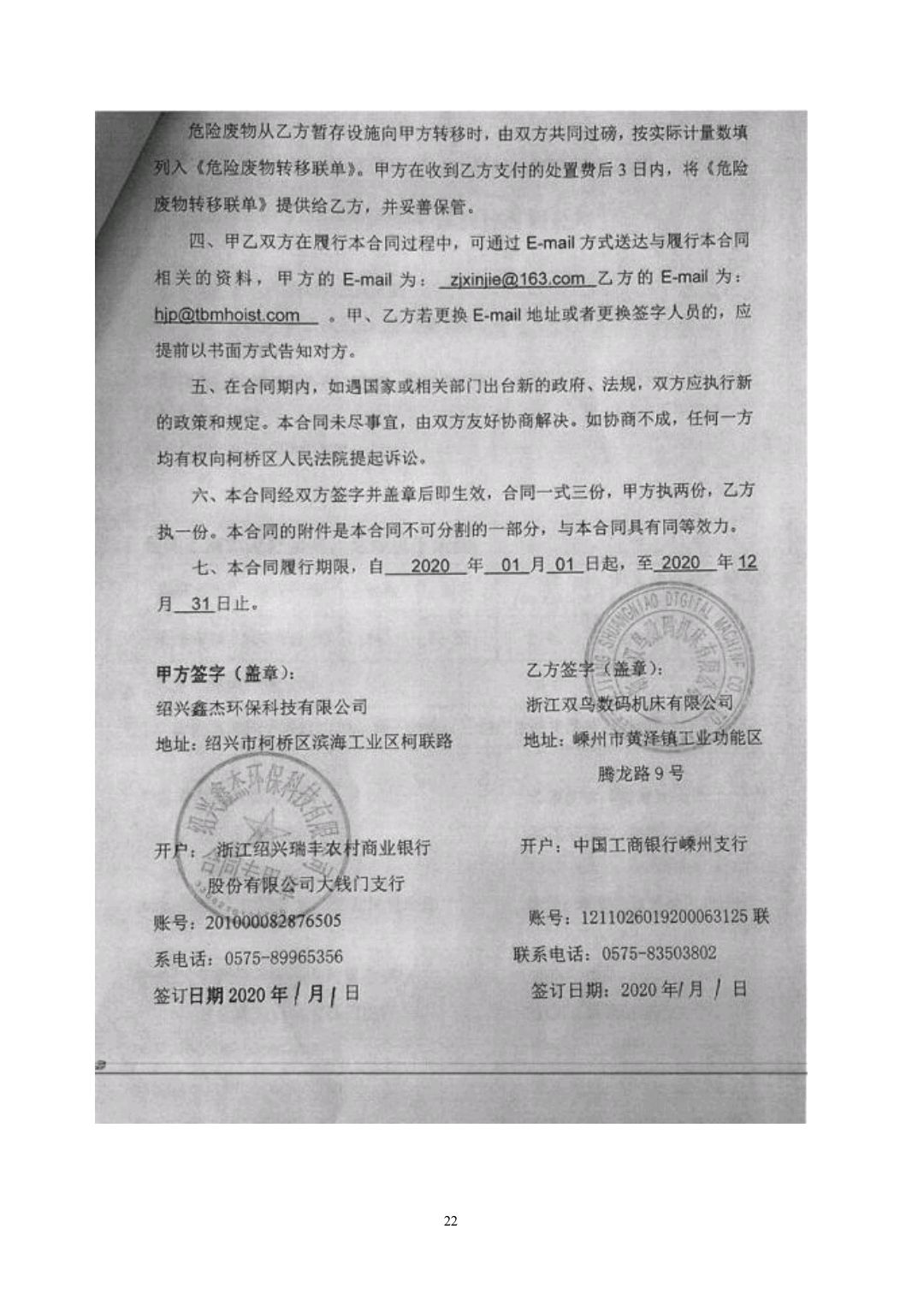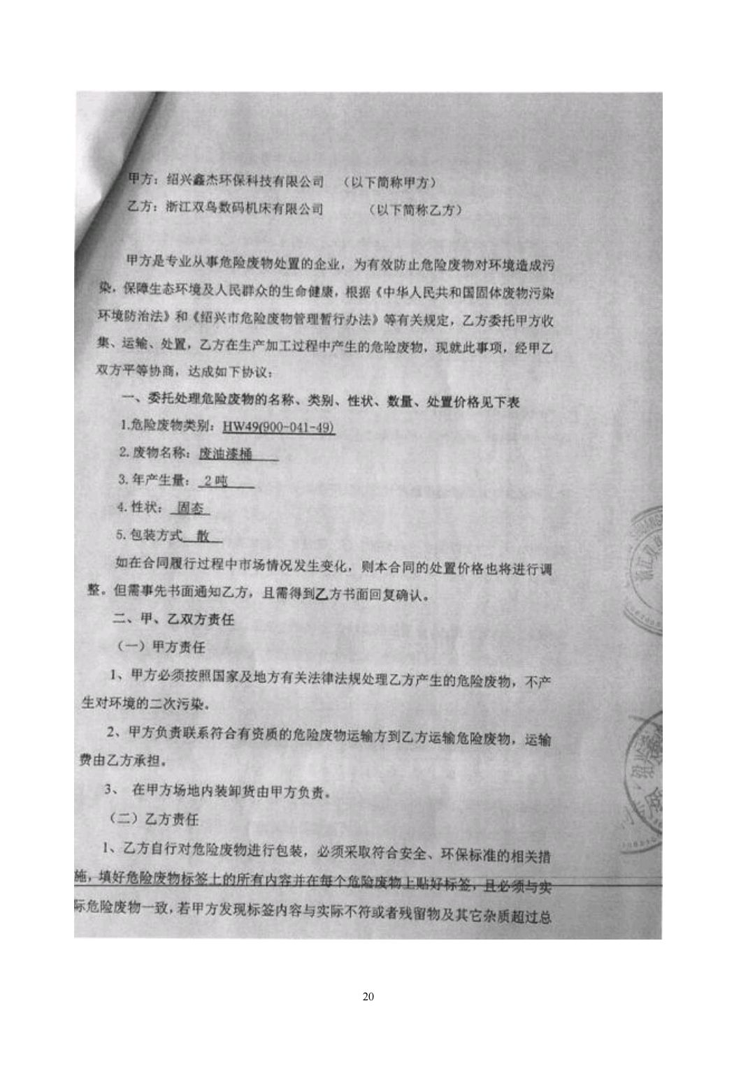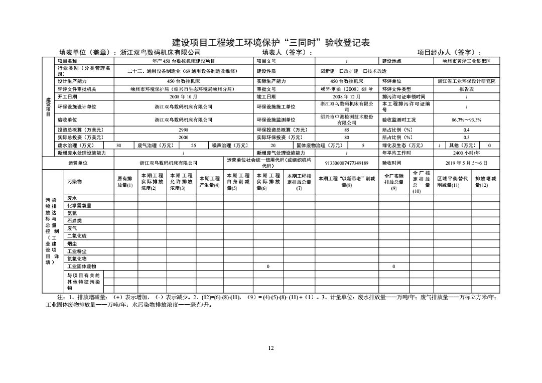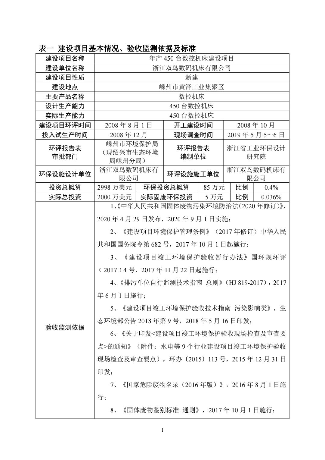 浙江雙鳥數碼機床有限公司年產 450 臺數控機床建設項目(固廢)竣工環境保護驗收調查報告 表